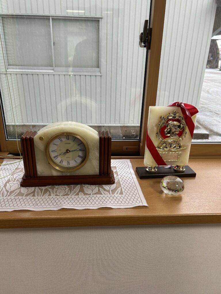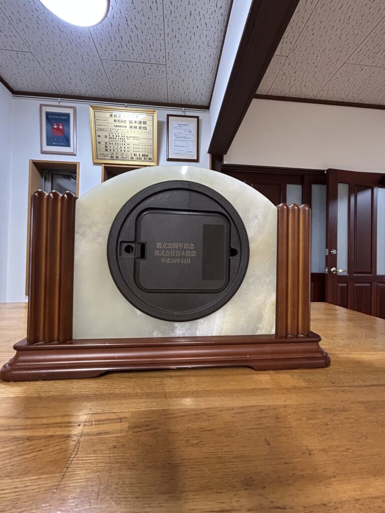 役員宅より弊社20周年の時に会社からもらった時計が見つかり会社に飾りました。