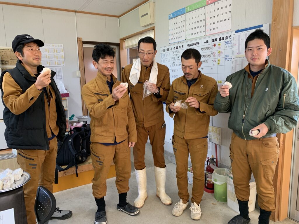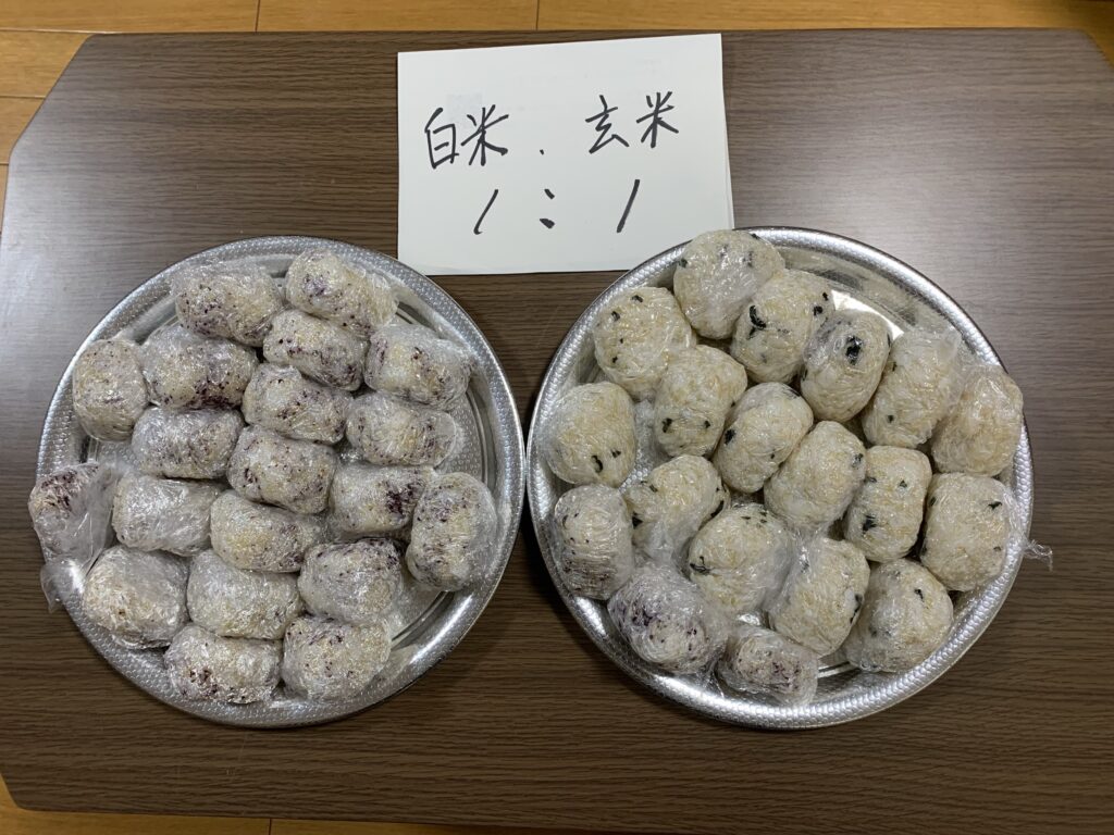 休憩室でおにぎりを食べている様子です。