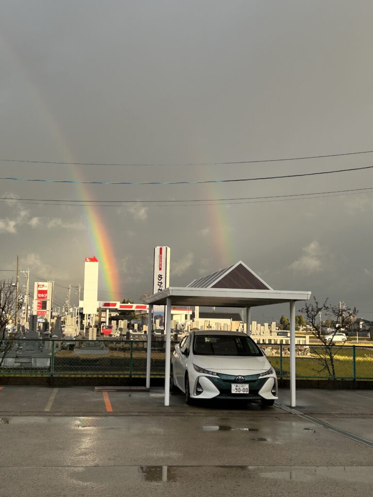 今日の朝は雨が降っていましたが、晴れ間に虹が2本かかっていました🌈