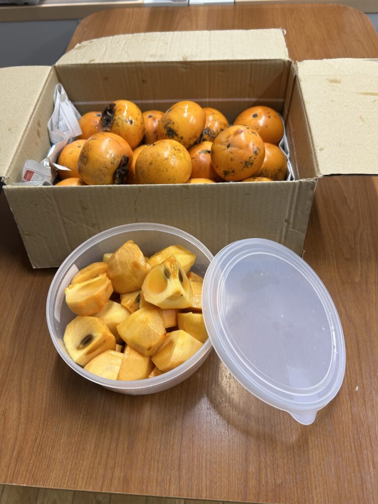 そして従業員宅で実った柿も今日で最後です。寒くなってきて甘さも増し仕事終わりの売れ行きがとてもよかったです!