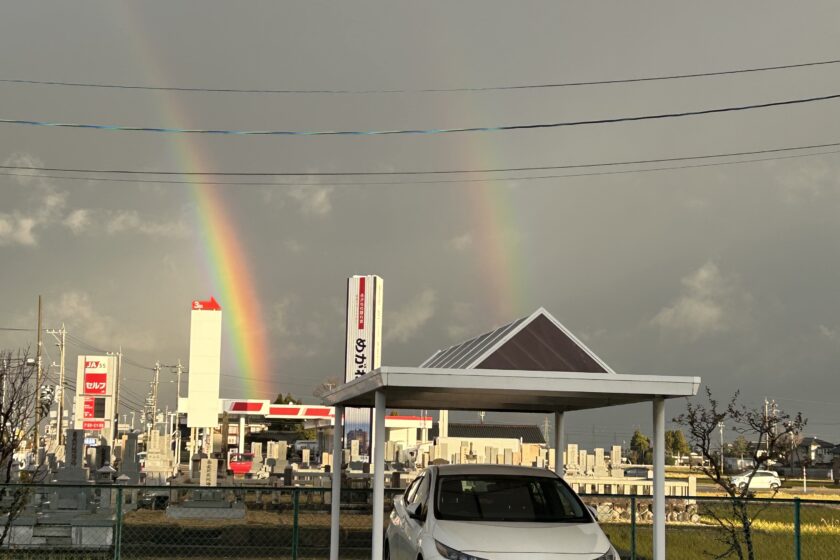 今日の朝は雨が降っていましたが、晴れ間に虹が2本かかっていました🌈