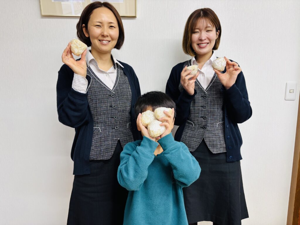 ↑今日は春休み中の従業員の子どもを会社に遊びに来ています。顔をおにぎりでかくしてハイチーズ(*^-^*)