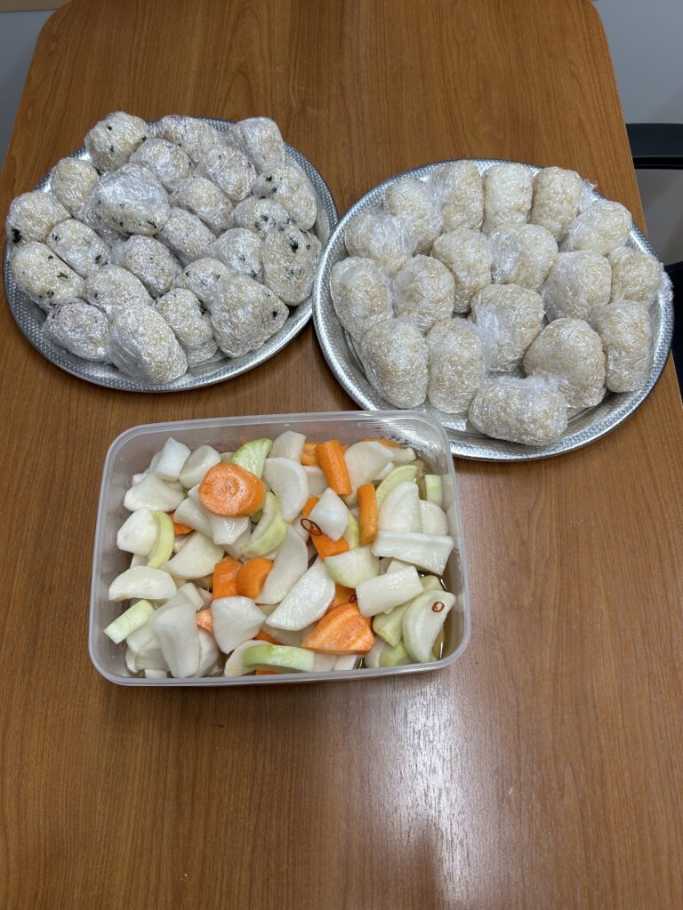 ↑今日も玄米と白米のミックスおにぎりを作りました。大根とにんじんの漬物を一緒に。