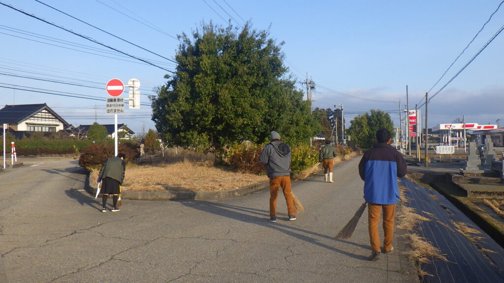 今月の朝礼「安全の日」 が行われました。雪もすっかり融けて天気も良く道路清掃するにはもってこいです!